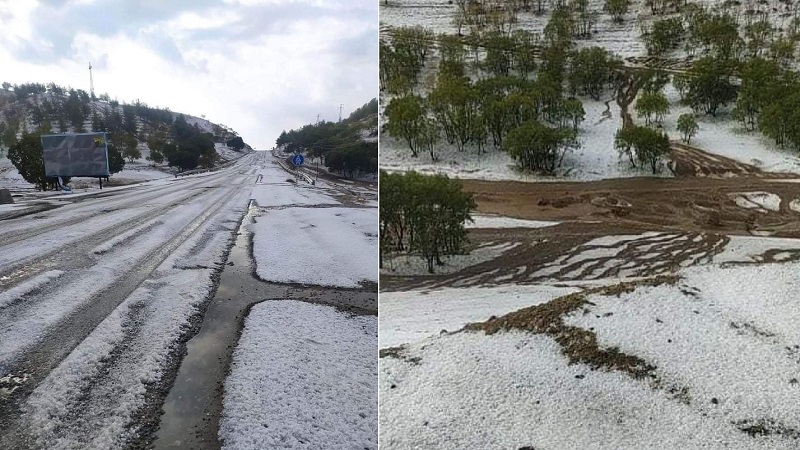 من جهته نشر المتنبئ الجوي حسين الأسدي على "فيسبوك" اليوم السبت، صورا من منطقة قرداغ بمحافظة السلیمانیة تظهر كثافة تساقط حبات البرد فيها صباح الیوم.