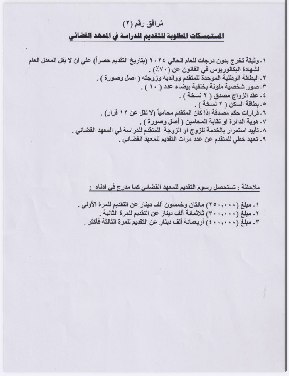 أعلن المعهد القضائي، اليوم السبت، عن فتح باب التقديم للدورات (50) و(51) للعام الدراسي 2024- 2025.