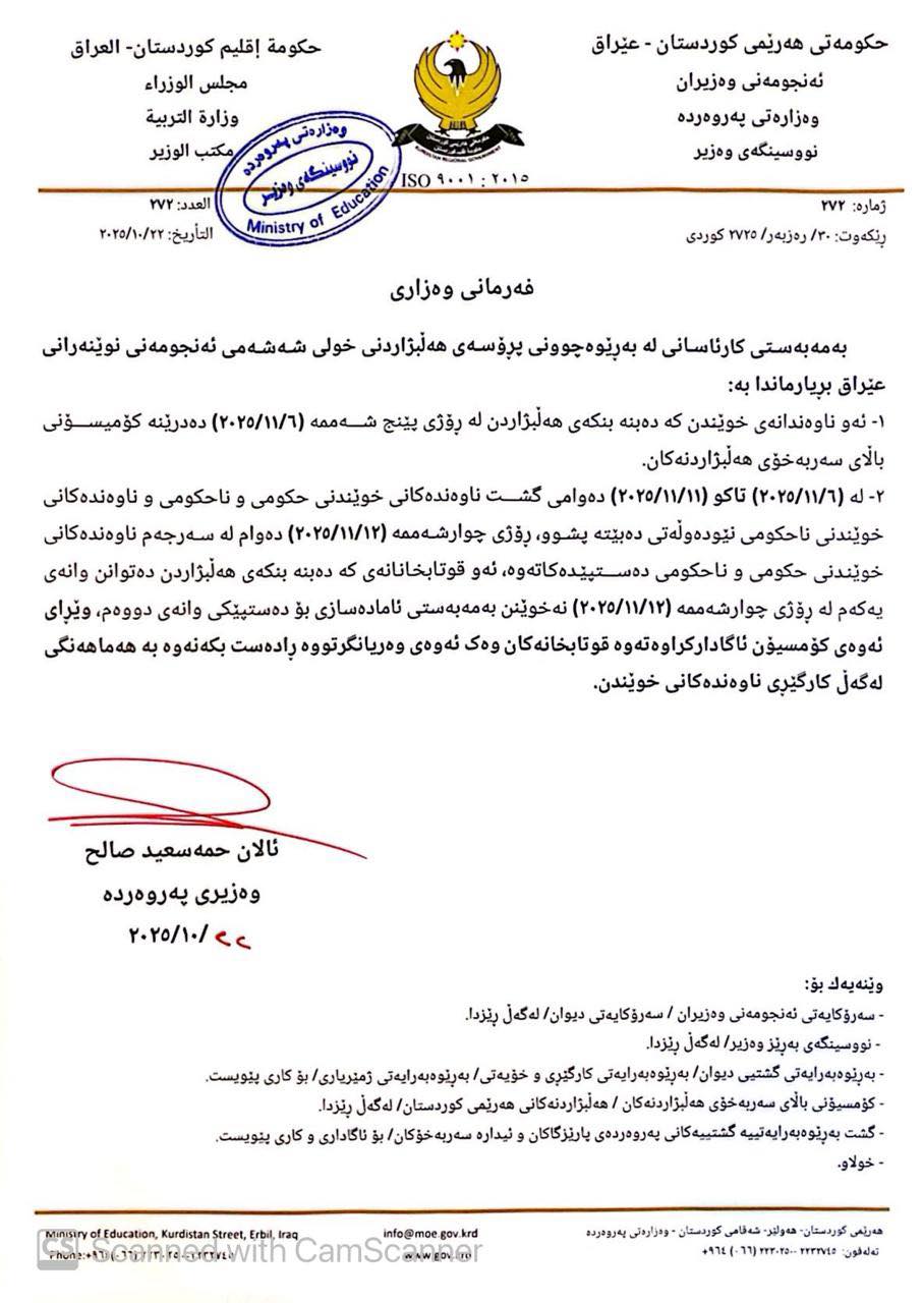 وەزارەتا پەروەردەیا هەرێمێ بەلاڤکر، ئەو ناڤەندێن خواندنێ دێ بیتە بێهنڤەدان ل