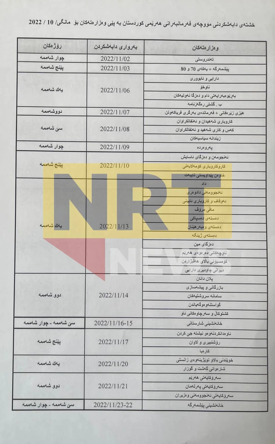 رێکەوتی ١٠ی ١١ی ٢٠٢٢ موچەی هەریەکە لە ئەنجومەن و دەزگای ئاسایش و