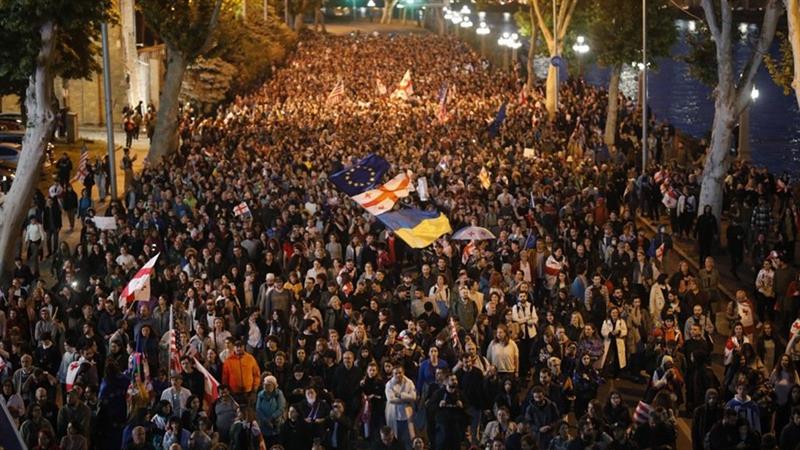 سەدان هەزار کەس لە وڵاتی جۆرجیا دژی دەسەڵاتدارانی وڵاتەکەیان رژانە سەرشەقام و لە کۆشکی سەرۆکایەتی لە تبلیسی پایتەخت نزیک بوونەوەتەوە.