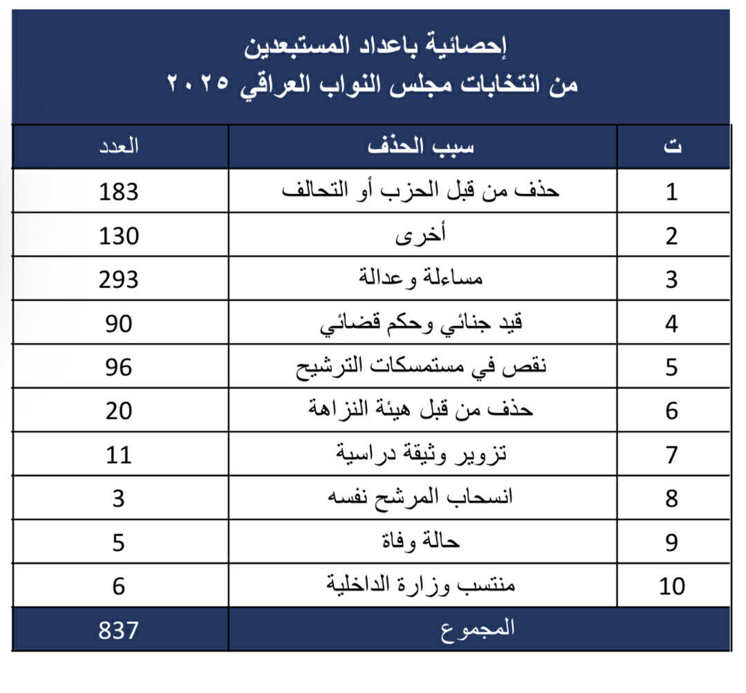 هەلبژارتنێن عێراقێ دبێژیت، د دەستپێکا پێداچوونێ د ناڤێن بەربژێران دا تا نها ٨٣٧