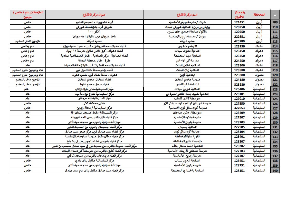 راگەهاندنا کۆمسیۆنێ ژی نەهـ ژ وان ناڤەندان ل دهۆکێ نە و ١٥ ل هەولێرێ و ١٨ ل