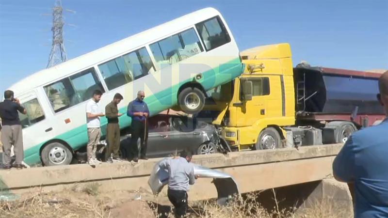 لەسەر رێگاى کەرکوک – سلێمانى، بارهەڵگرێک کۆنتڕۆڵی لەدەست دا و بووە هۆى پێکدادانى نۆ ئۆتۆمبێل و سێ کەسیش برینداربوون.